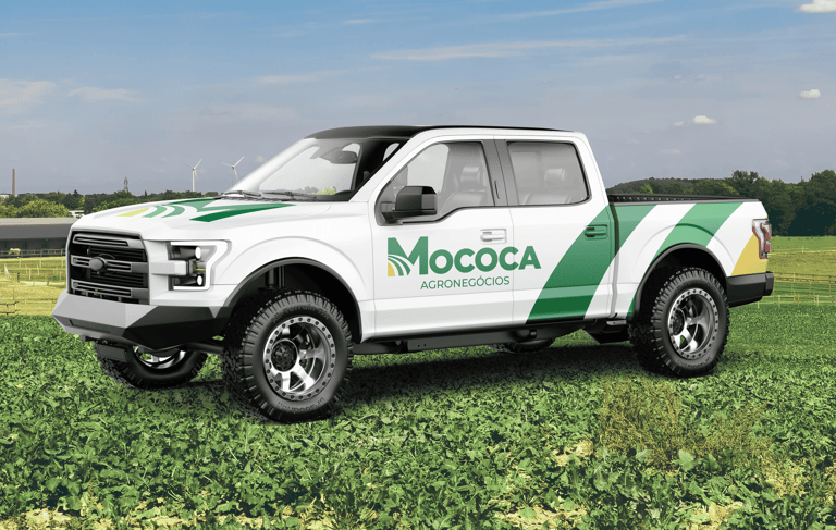 A construção da marca reflete a força e a confiança presentes no agronegócio.
